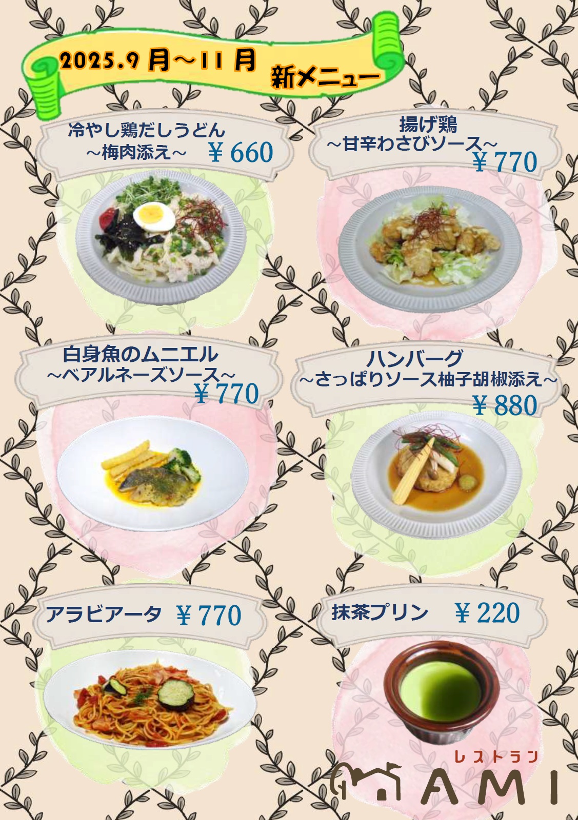 レストランAMI9月~11月のメニューのご案内です!